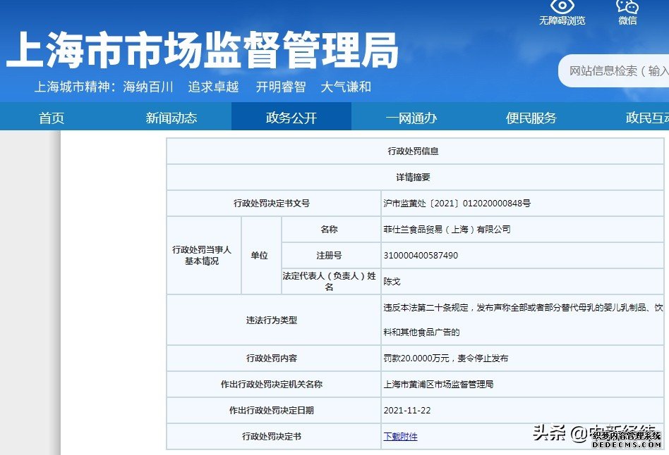 ???中新經(jīng)緯12月1日電 據(jù)上海市市場監(jiān)督管理局網(wǎng)站消息,近日,F(xiàn)riso美素佳兒關聯(lián)公司菲仕蘭食品貿(mào)易(上海)有限公司被罰20萬元。