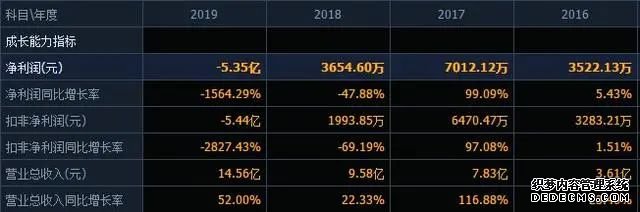 根據(jù)2019年年度報告數(shù)據(jù)顯示,2019年公司實現(xiàn)營業(yè)收入14.56億元,同比增長52%;實現(xiàn)歸屬于上市公司股東的凈利潤-5.35億元,同比下滑1564.29%,較上年同期由盈轉(zhuǎn)虧。