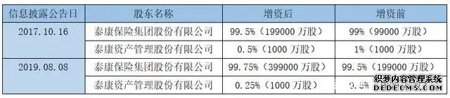 公開信息顯示,泰康在線成立于2015年11月,是泰康集團(tuán)全資設(shè)立的互聯(lián)網(wǎng)保險(xiǎn)公司,初始注冊(cè)資本為10億元。2017年10月和2019年8月,公司股東泰康集團(tuán)先后兩次以貨幣方式向泰康在線增資,增資完成后,泰康在線注冊(cè)資本由初始10億元增加至40億元。而增資的主要原因便是提高償付能力充足率。